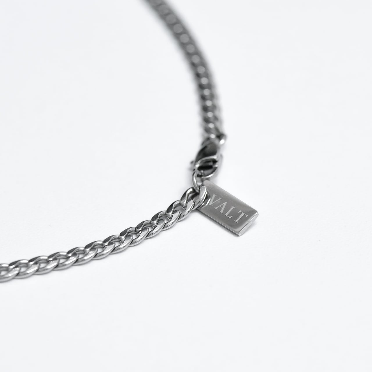 確かな存在感を演出する「VALTの強さ」を3.5mm幅・50cm長のシルバーチェーンに詰め込みました。