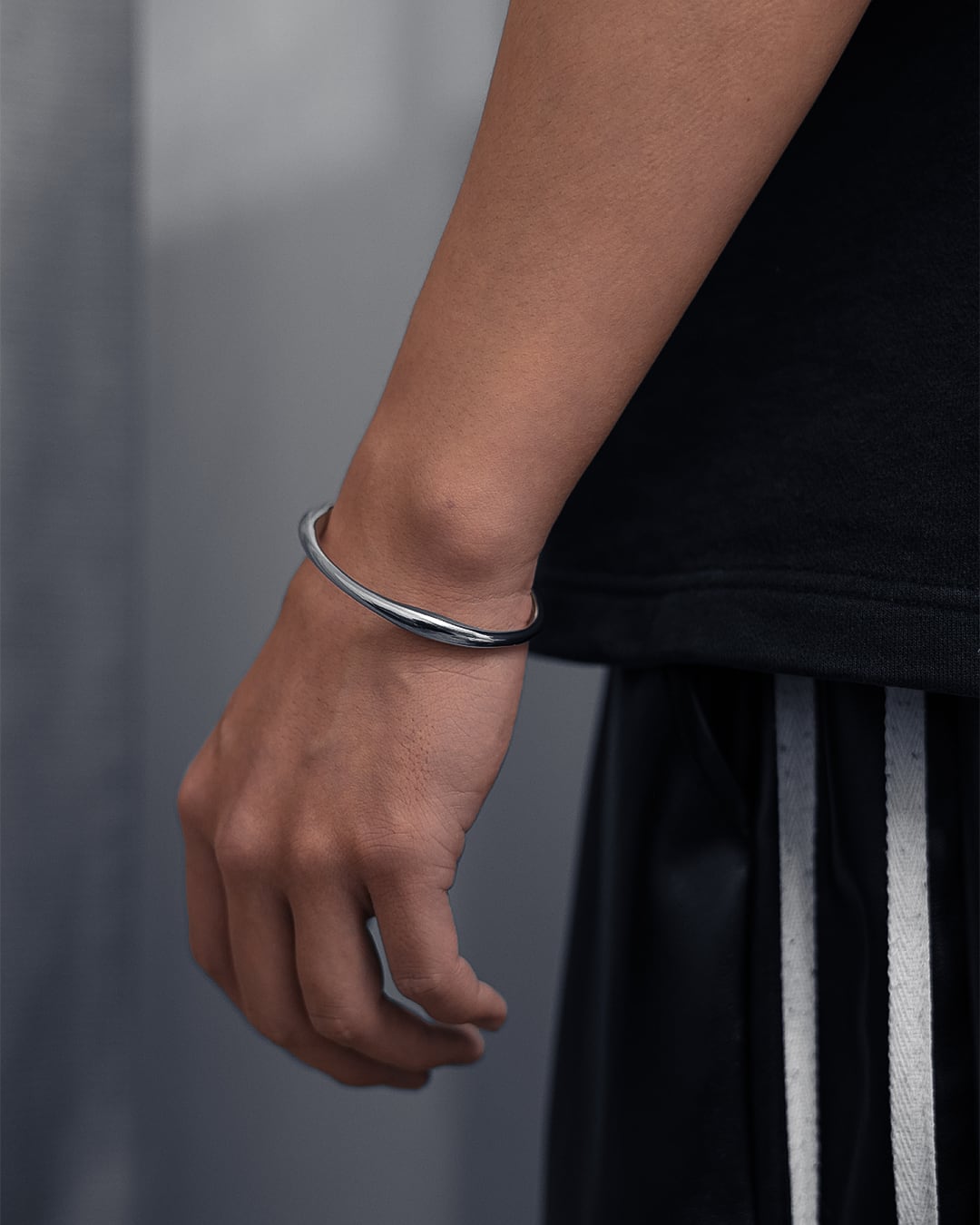 滑らかな曲線が手元に静かな存在感をもたらす、VALTのウェーブシルエット ステンレスバングル。